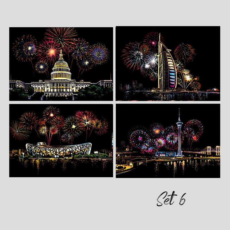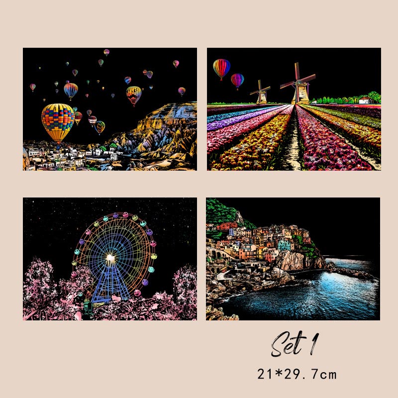 Dieses Set umfasst 4 wunderschön designte Szenen und bietet eine unterhaltsame, entspannende kreative Aktivität. Entfesseln Sie Ihren inneren Künstler, indem Sie schöne Stadtlandschaften enthüllen, indem Sie die dunkle Beschichtung abkratzen.
